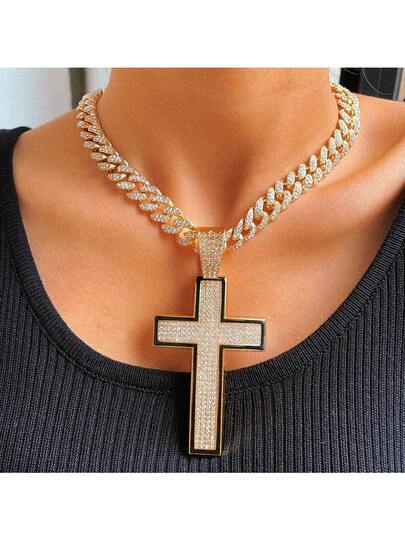 13/14毫米菱形链水钻心形十字架吊坠项链,男女皆宜,嘻哈风格,链项链,珠宝礼品 - 吊墜 - 查看 1