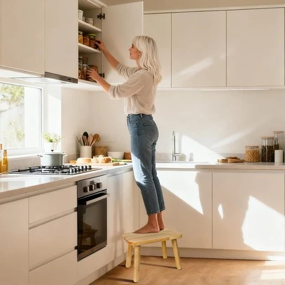 13.4 英寸成人重型木质踏凳,浴室凳,适用于高床、厨房、浴室、办公室、花园等场所,方形实木踏凳,可作植物架,防滑,承重 300 磅,易于组装