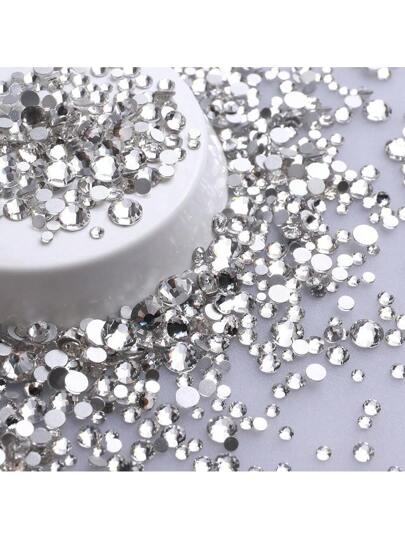 1440顆混合玻璃銀底扁平後貼鑽石,DIY指甲藝術配件SS3-SS20 - 白色 - 查看 1