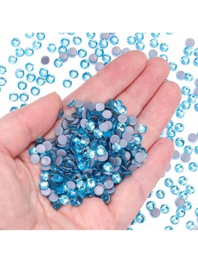 1440顆頂級質量ss3-ss30尺寸的圓形扁底玻璃鑽石,帶有黏性底部,可用於服裝、鞋子、帽子和飾品裝飾 - 湖藍 - 查看 1