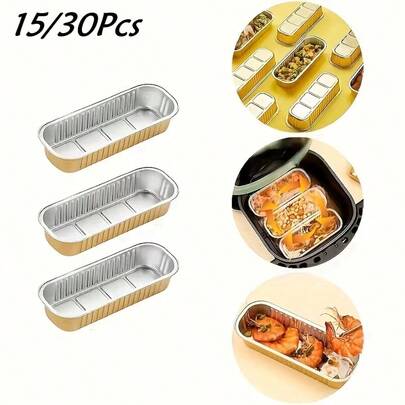 15/30个装加厚铝箔烤盘,适用于空气炸锅 - 长方形锡箔烤盘,适合家庭烘焙、露营、派对和生日装饰、空气炸锅配件、露营炊具、派对用品、可重复使用容器、坚固耐用、耐热材料、烘焙必备品、派对策划、户外烹饪
