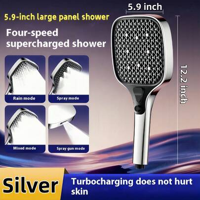 15厘米大面板淋浴喷头,超大面板,4种水流模式(雨淋/雾化/混合/喷射),强劲水流,适用于水压高的家庭。 - 銀色 - 查看 4