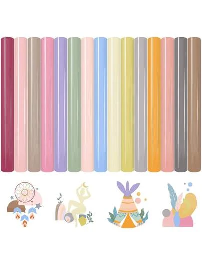 15片12英寸x10英寸中性色调波西米亚风热转印乙烯基贴纸,包含多种颜色乙烯基贴纸套装,共15种颜色,可用于熨烫T恤、衣服、帽子、包包和DIY工艺品。 - 彩色 - 查看 1