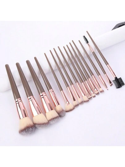 15件套化妆刷套装,适用于眼部、面部和唇部。包含眼影刷、眼线刷、散粉刷、眉刷、粉底刷、腮红刷、高光刷、遮瑕刷等。化妆刷套装,化妆刷套装,化妆刷套装,全套化妆刷,化妆刷套装,全套化妆工具,化妆刷套装,化妆刷套装,化妆礼盒套装 - 棕色 - 查看 1
