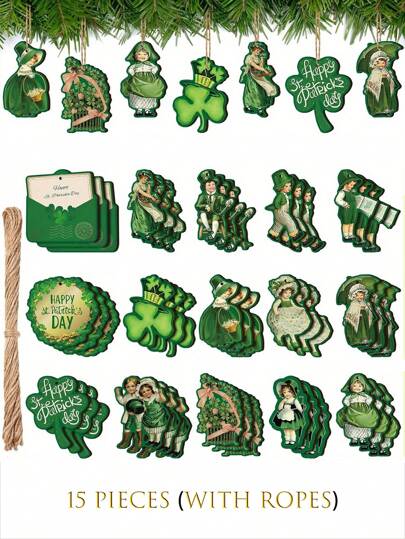 15入組聖派翠克節幸運女孩信封帽、木質吊飾套裝、繩索裝飾,適用於桌子和窗戶、家庭派對裝飾,節日配件和派對用品 - 彩色 - 查看 1