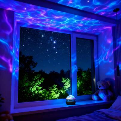 16色波浪图案投影灯 | USB供电,遥控器控制,无需电池 - 为您的卧室和客厅营造梦幻氛围!