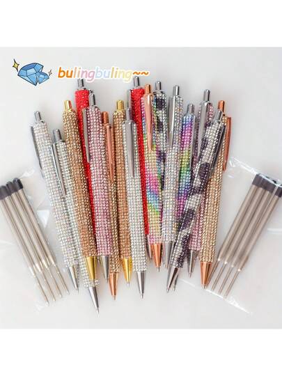 16Pcs(8 Pens+8 Refills) Rhinestone Pens Bling Metal Ballpoint Diamond Pens Bulk Fancy Sparkly Crystal Press Retractable Black Ink 0.7mm For Women Office Meeting Birthday Supplies Wedding Gifts