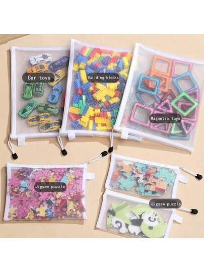 16pcs/8pcs/婴儿房玩具收纳袋积木收纳袋拼图玩具分类整理魔术袋网袋拉链袋外出洗漱用品收纳袋 - 彩色 - 查看 6