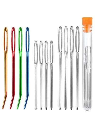17 件/套 12 支不锈钢大眼针 +4 支彩色弯挂毯针,带 1 个储物盒,钩针弯针,大眼织针,挂毯针,弯针,弯挂毯针,羊毛针,用于缝纫、钩针编织、DIY 针织(所有款式颜色随机) - 多色 - 查看 12