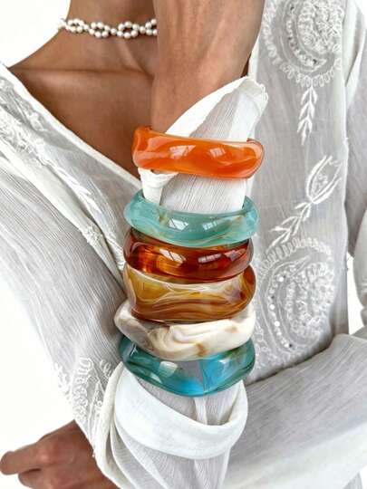 17KM 1/3/6件套彩色亚克力手链套装,Y2K极简优雅扎染手链,适合日常佩戴和度假