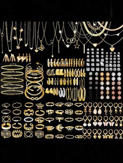 Review: I am so impressed with this set of earrings, rings, and necklaces. Usually, when buying a variety pack, there are a few "filler" pieces, but every item in this collection is lovely and wearable. The designs range from classic and elegant to more modern styles, so there is always something that matches my mood or outfit. The quality is excellent; the rings are sturdy, the earring backs feel secure, and the necklace clasps are easy to use. They all have a great weight to them and a brilliant shine that really stands out. It’s the perfect all-in-one kit for someone looking to refresh their jewelry options or find great pieces for layering. Highly recommended for the quality and the stunning variety!