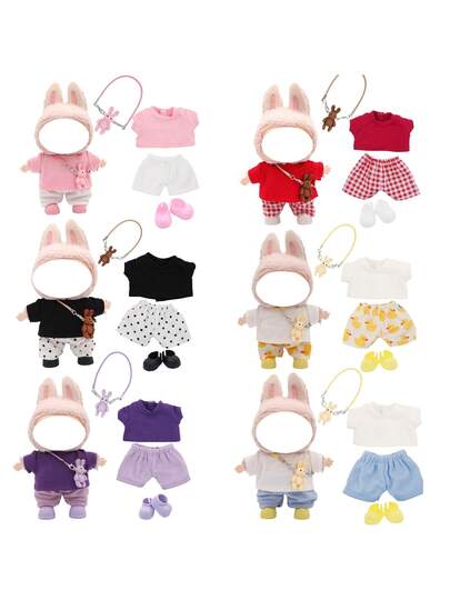 17厘米盲娃娃钥匙扣配件套装,含鞋子、衣服,时尚多色,可爱日常装(不含娃娃和鞋子) - 彩色 - 查看 6