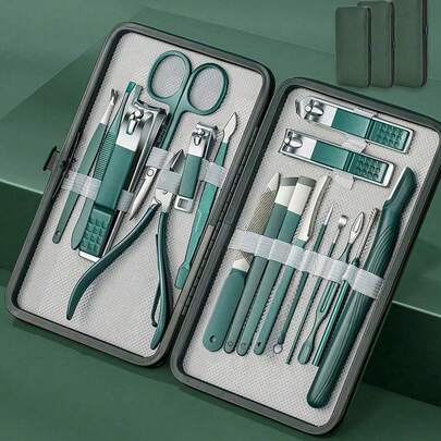 18/16/10/7/24件套专业美甲护理套装 - 包含全套美甲护理工具、指甲钳、指甲锉和收纳盒 - 旅行或居家美甲套装 - 綠色 - 查看 1