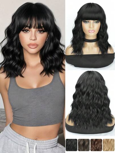 18英寸波浪刘海假发,采用耐热合成材料制成,适合女性日常佩戴。 - 彩色 - 查看 6
