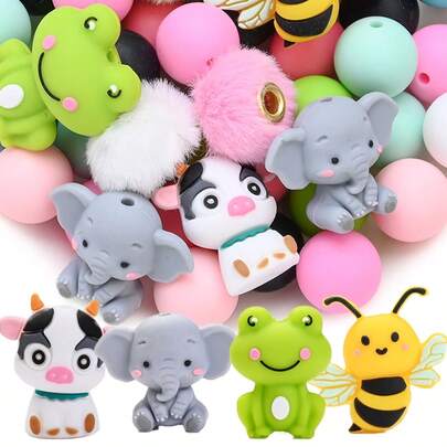 18颗动物硅胶珠套装,彩色动物造型毛绒大孔珠,适合DIY、手链、项链和各种手工项目,情人节礼物珠宝制作珠子 - 彩色 - 查看 1