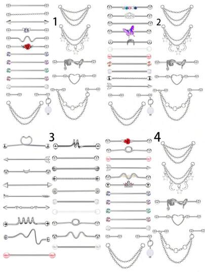 19入組14g不銹鋼工業耳環,女男皆宜的蛇鏈掛墜軟骨螺旋工業耳飾diy工業耳棒38mm - Industial barbell - 查看 11
