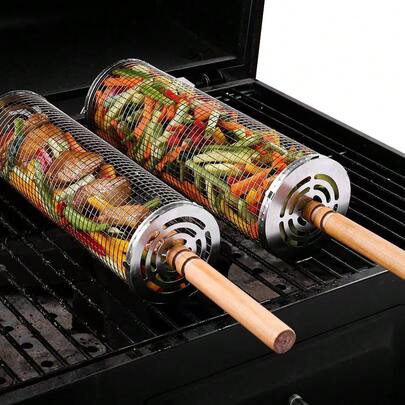 1个18英寸大号不锈钢不粘烧烤篮,带耐热木柄,可折叠便携网架,通用型,适用于木炭/燃气/电烤炉,是烧烤蔬菜/虾/肉/海鲜及小食的必备烧烤工具,非常适合露营、后院露台聚会烧烤,易于清洁和存放,是烧烤爱好者的必备配件。 - 彩色 - 查看 4