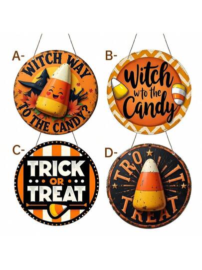 1 件 2D 平面悬挂装饰,女巫路上的糖果 - 旧时万圣节主题,带微笑的玉米糖,女巫帽和秋叶 - 非常适合家庭、客厅、浴室、卧室、车库、酒吧、咖啡厅 - 非常适合节日装饰、万圣节装饰