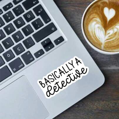 1张3英寸可移除防水户外PVC耐用乙烯基贴纸,趣味“基本上是个侦探”粗体草书文字,讽刺幽默,适合犯罪爱好者,病毒式传播,Z世代风格,完美适用于笔记本电脑、手机、水瓶、滑板、头盔、日记本、汽车保险杠、笔记本、宿舍装饰、旅行行李箱,是送给13-30岁青少年、女孩、男孩、推理迷、侦探、爱管闲事的朋友的理想礼物。创意装饰贴纸,防水乙烯基材质,适用于任何光滑表面。