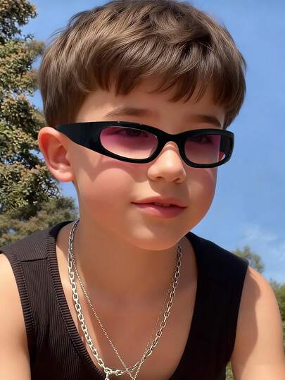 1副儿童飞行员款运动眼镜框,适合4-10岁儿童,聚碳酸酯材质,经典黑白休闲个性复古百搭时尚眼镜,适合户外活动、派对、海滩度假、骑行等场合,附赠眼镜盒