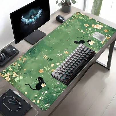 1 件装可爱猫咪绿花草地桌面垫,时尚设计加长鼠标垫,适用于办公和游戏,美观的桌面保护垫,可水洗橡胶垫,防滑锁边,多尺寸鼠标垫,适合家庭办公室使用,是送给家人和朋友的好礼物 - 彩色 - 查看 1