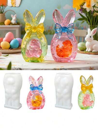 1个复活节彩蛋造型兔子蜡烛硅胶模具,DIY香薰饰品蝴蝶结石膏模具 - 复活节、情人节、开斋节和宰牲节的完美礼物 - 彩色 - 查看 1