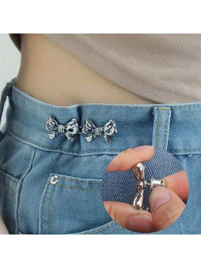 1 件易夹可调节腰带扣,适用于牛仔裤和裙子 - 无需缝纫,金属蝴蝶结纽扣紧固件,完美贴合 - 銀色 - 查看 10