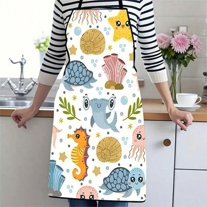 1件装厨房烘焙花园围裙,卡通海洋生物图案,适用于花园烹饪和烘焙 - C - 查看 15