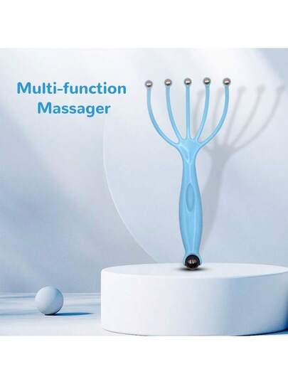 1個減壓工具頭部按摩爪頭部按摩器五爪頭皮按摩器爪子抓頭部按摩器按摩頭部 - 藍色 - 查看 1