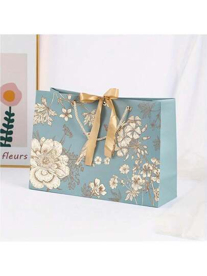 顏色: 藍色花鳥 | 尺寸: 2件組大號[袋子+2條絲帶]