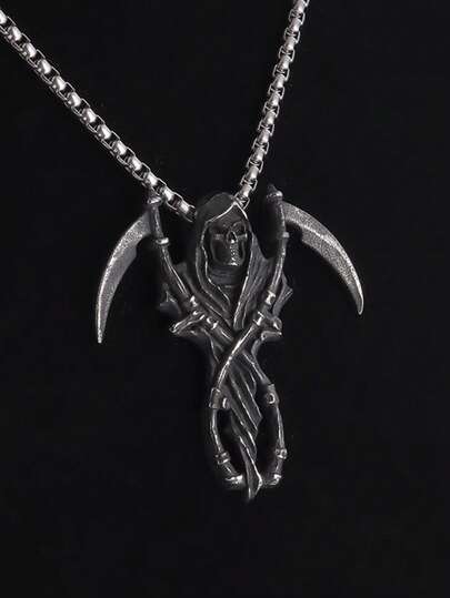 1件复古哥特式死神镰刀骷髅吊坠项链,男女皆宜,朋克摇滚派对饰品礼物 - 時尚 - 查看 1