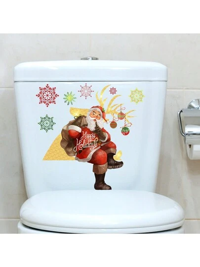 1入組/張聖誕老人牆貼,聖誕節馬桶貼紙,雪花、聖誕球,牆壁貼紙,可撕式,可擦式,適用於臥室客廳牆面裝飾藝術、浴室馬桶、廁所、窗戶