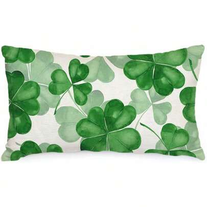 1个圣帕特里克节枕套,尺寸12x20英寸,三叶草装饰,农舍风格,节日春季枕套,家居沙发装饰,单面图案,不含枕芯 - 綠色 - 查看 1