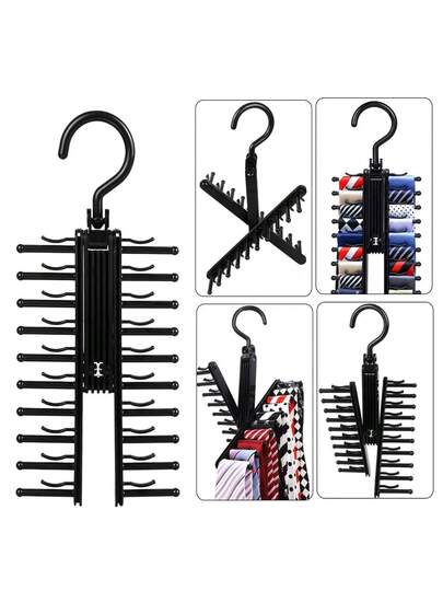 1入組領帶掛架十字型x形衣架,領帶腰帶掛架收納架,非滑夾持器具有360度旋轉,20掛鉤黑色 - 黑色 - 查看 7