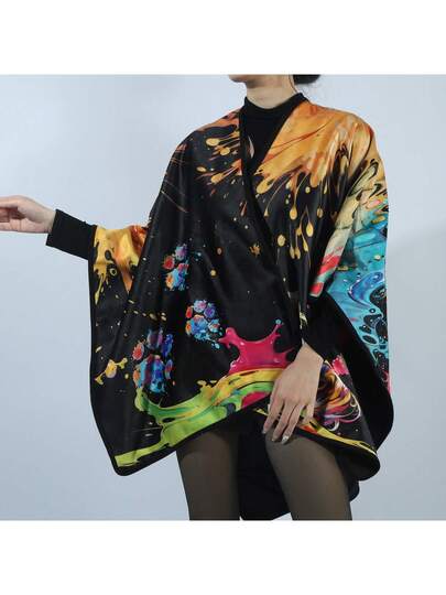 1入女性狗彩色畫數位印花冬季兩層保暖大披肩 - 彩色 - 查看 8