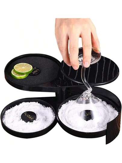 1PCS Glass Rimmer Plastic Glass Rimmer Cups And Jars Margarita Salt Rimmer Michelada Rimmer With 3 Rotating Trays Bar Accessories For Cocktail Kitchen Bartops Bartender (155mm*200mm*70mm) - 155 mm * 200 mm * 70 mm - 查看 1