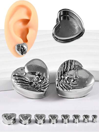 1对朋克复古不锈钢分叉心形无花果骷髅耳洞耳扩耳扩加强穿孔扩张腰部鞍形耳环日常佩戴 - 1對心形鬼頭耳擴 - 查看 10
