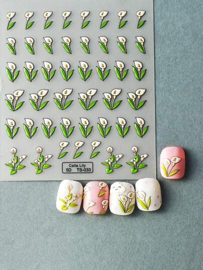 1 件 5D 浮雕花朵美甲贴纸粘性滑块 DIY 指甲油美甲贴纸贴花 - 彩色 - 查看 6