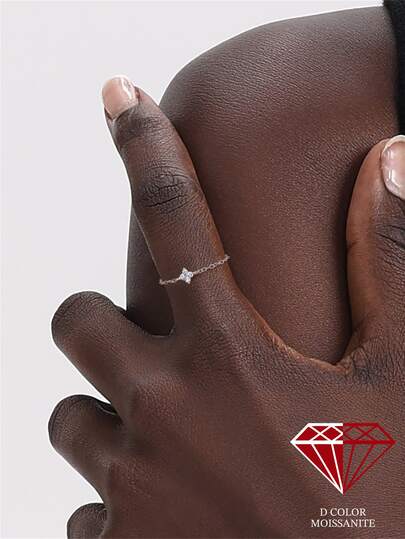 1枚925纯银莫桑石时尚四叶草可调节戒指,精美首饰,适合女性日常佩戴、派对、婚礼和宴会等场合。 - 銀色 - 查看 1