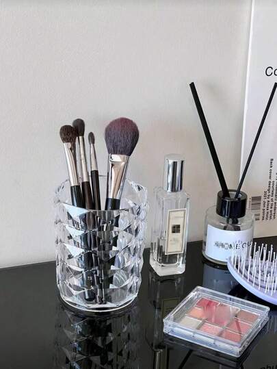 1个透明水晶化妆刷收纳筒,刷架,家用化妆品盒,眉笔,梳子和梳妆台 - 透明 - 查看 1