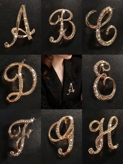 1枚A-Z字母水钻胸针 – 欧式合金闪亮别针,优雅百搭,适合搭配西装/衬衫/外套/连衣裙,完美礼物 - 彩色 - 查看 9