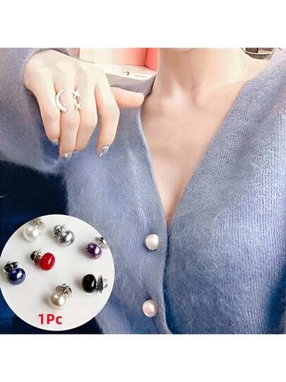 1入pc人造珍珠diy襯衫領針彩色胸針時尚裝飾衣服夾襯衫毛衣飾品配件 - 灰色 - 查看 1