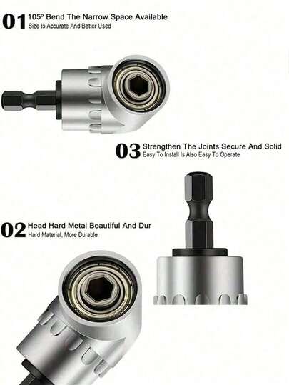 1个高精度耐用105度直角钻头/起子 - 直角钻头附件电动螺丝刀钻头适配器,通用型,适用于有线/无线电钻/冲击钻/锤钻,狭小空间作业/家居装饰/建筑翻新/DIY维修/家庭维护/车库工作室/木工的必备工具,圣诞节、生日、父亲节等节日送礼佳品,男士理想之选。 - 直角鑽頭 - 查看 6