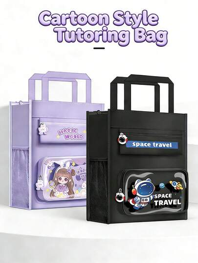 1个可爱卡通帆布手提辅导包 - 防水多层大容量学生美术作业收纳包,男女童返校文具手提袋 - 手提補習包 - 查看 10