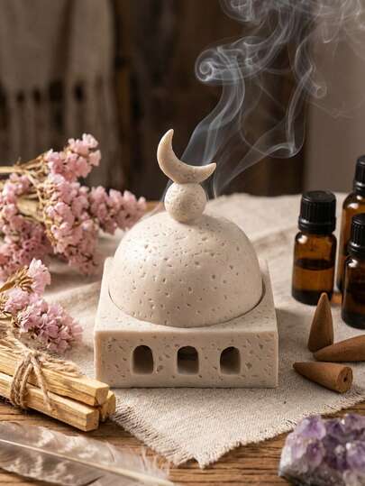 1个清真寺圆顶形树脂香炉,简约新月形装饰香炉,拱形镂空底座,适合家居装饰 - 彩色 - 查看 10
