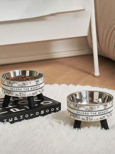 1个新款宠物碗猫颈保护碗不锈钢大容量狗碗卡通猫饭碗