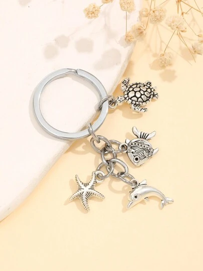 1件装海龟、海星、海豚钥匙扣 DIY手工海洋沙滩饰品