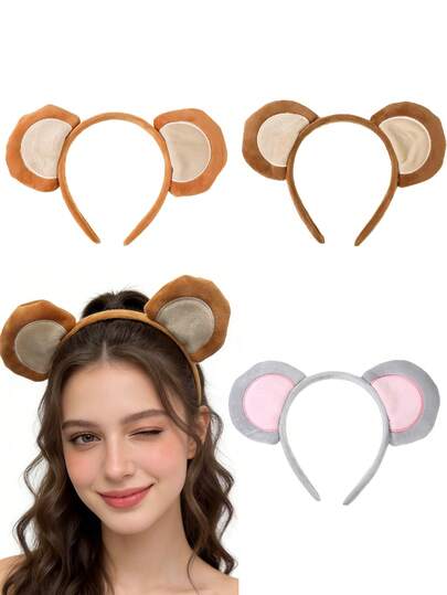 1个柔软熊耳朵发箍 毛绒老鼠耳朵发圈 洗脸卡通动物发带 - 彩色 - 查看 10