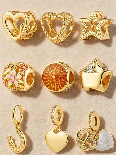 1颗闪亮金色Platad吊坠星心形珠子,适合原装蛇形手链项链,可用于DIY 925银饰品制作,女士饰品礼物,送给女孩/女儿
