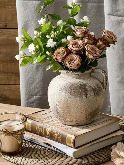 一件传统手绘复古侘寂风格陶瓷花瓶,可盛水,赤陶花瓶,简约装饰花瓶,日式侘寂风格圆腹窄口花瓶,适合民宿艺术装饰,做旧风格为房间增添奢华富丽的气息。现代简约,创意设计 - 多色D - 查看 1